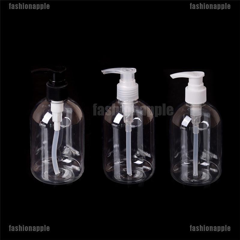 Clear refillable empty hand soap dispenser bottle with pump for body wash lotion.